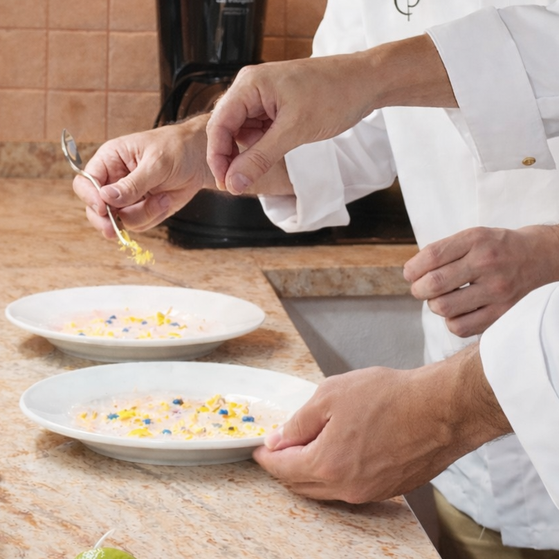 Alta cocina en la intimidad de tu villa. Diseñamos experiencias gastronómicas a medida, con producto excepcional, servicio impecable y absoluta discreción, para que solo tengas que relajarte y disfrutar.