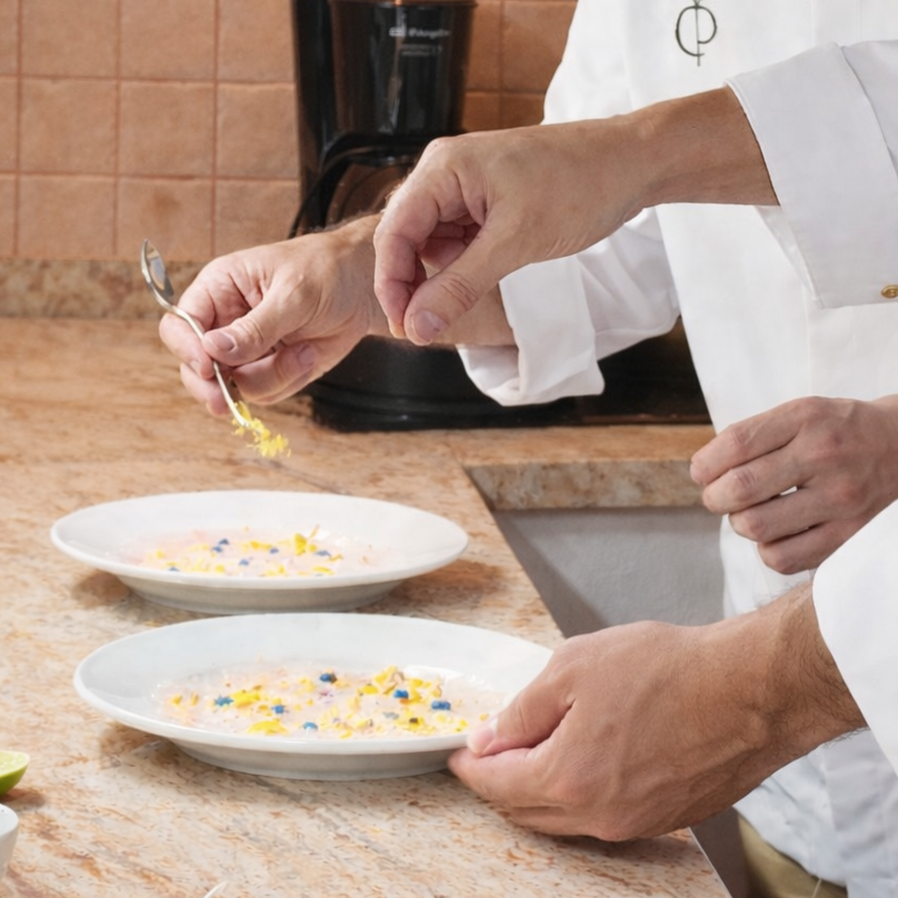 Alta cocina en la intimidad de tu villa. Diseñamos experiencias gastronómicas a medida, con producto excepcional, servicio impecable y absoluta discreción, para que solo tengas que relajarte y disfrutar.